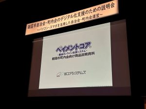 2026年1月25日に埼玉県朝霞市で開催された、「自治会・町内会向け デジタル化支援のための説明会・個別相談会」に参加しました。会は二部構成で行われ、第一部では参加した企業が1社ずつ自社の自治会・町内会向けのサービスについて説明を行い、当社は「ペイメントコア」を紹介させていただきました。