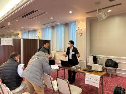 その後の第二部は各企業のブースに参加された自治会・町内会の方が自由に訪問し、個別相談が行われました。機能や使い方についてだけでなく、実際に行われている集金の中でペイメントコアをどう活用できるか?など、様々なご質問をいただき、配布用の資料や実際の画面を見て頂きながらご説明させて頂きました。